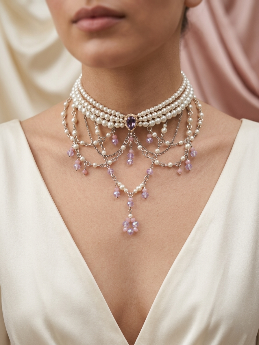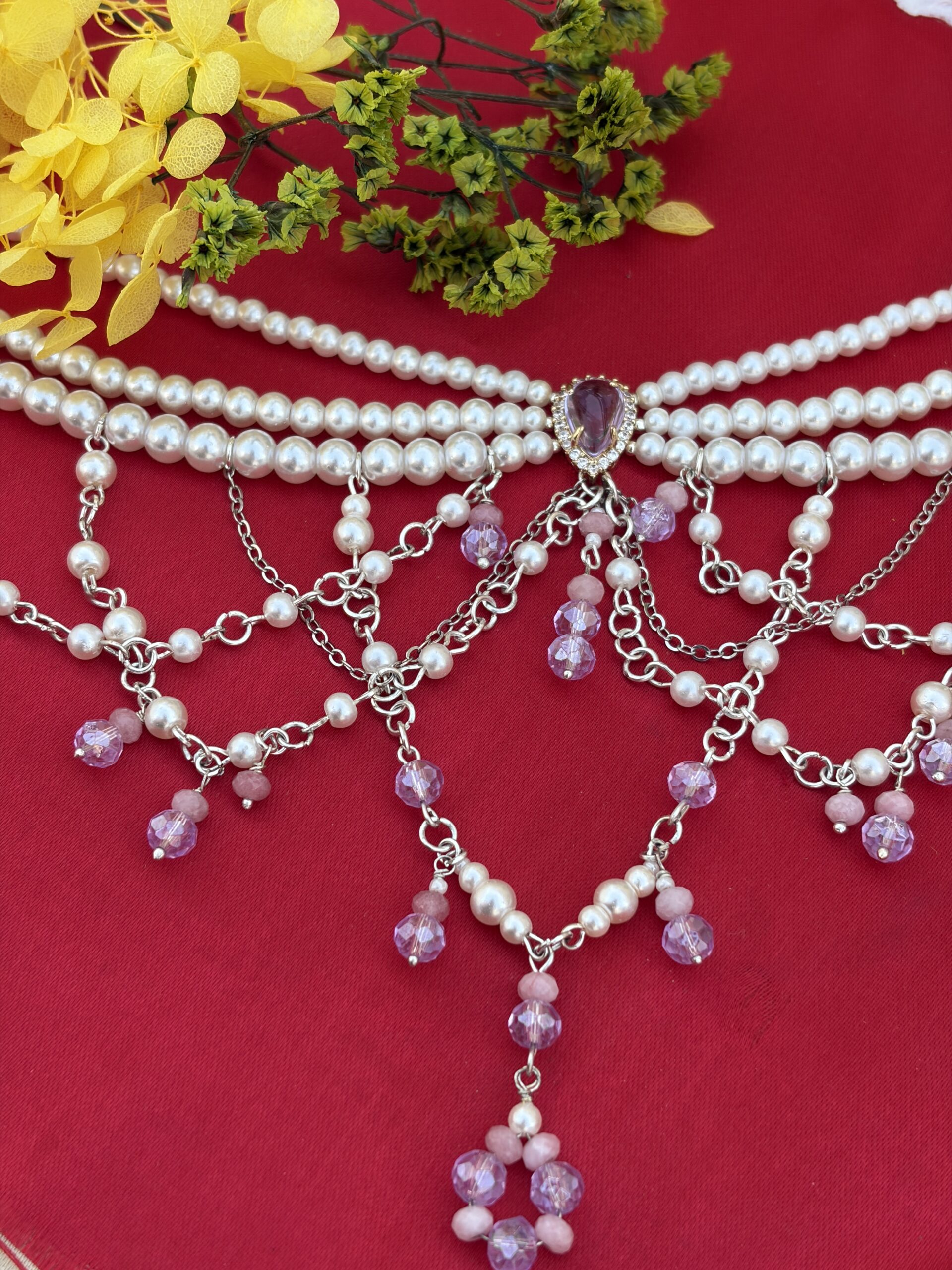 Pair this purple pearl choker with pastel dresses or sarees for a soft, elegant look.