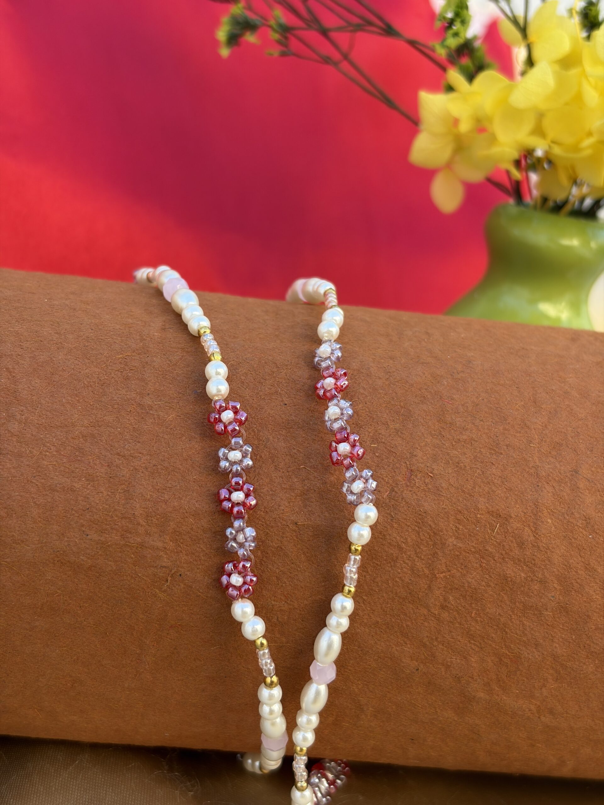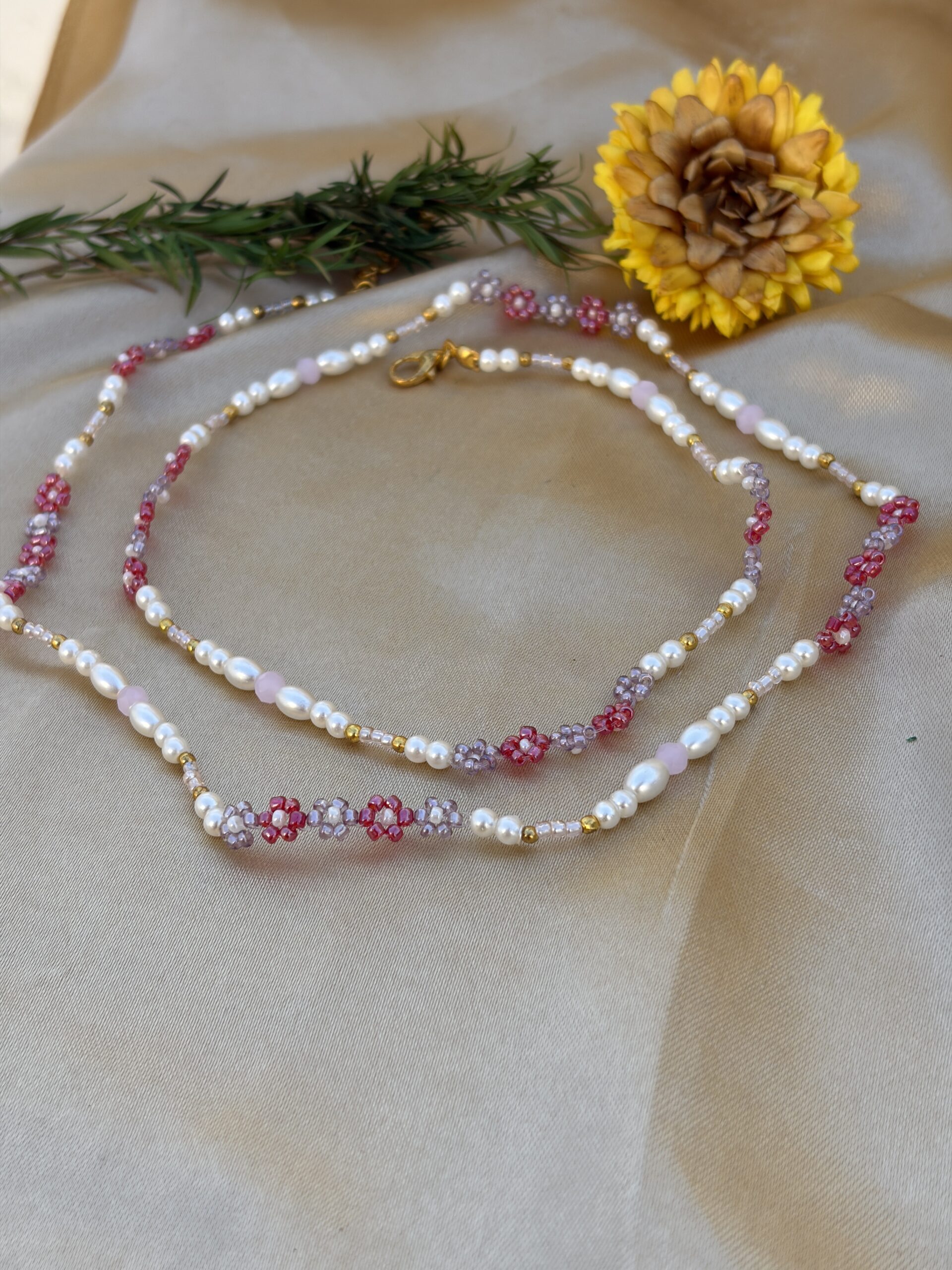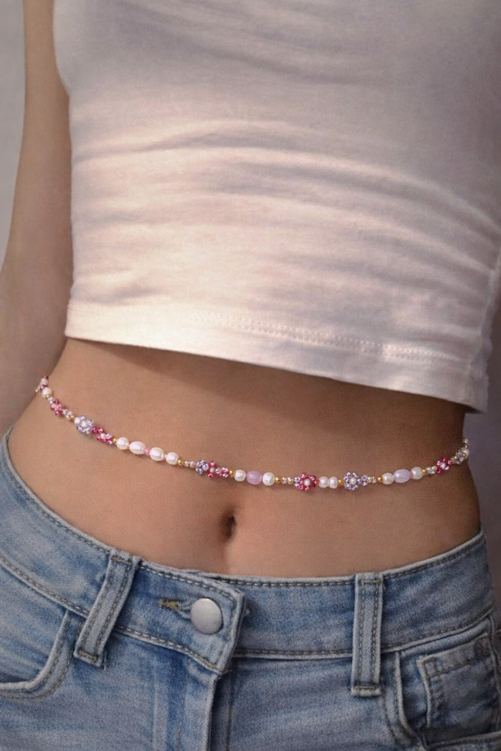 Cute floral beaded waist chain with pastel tones—playful, fresh, and stylish.