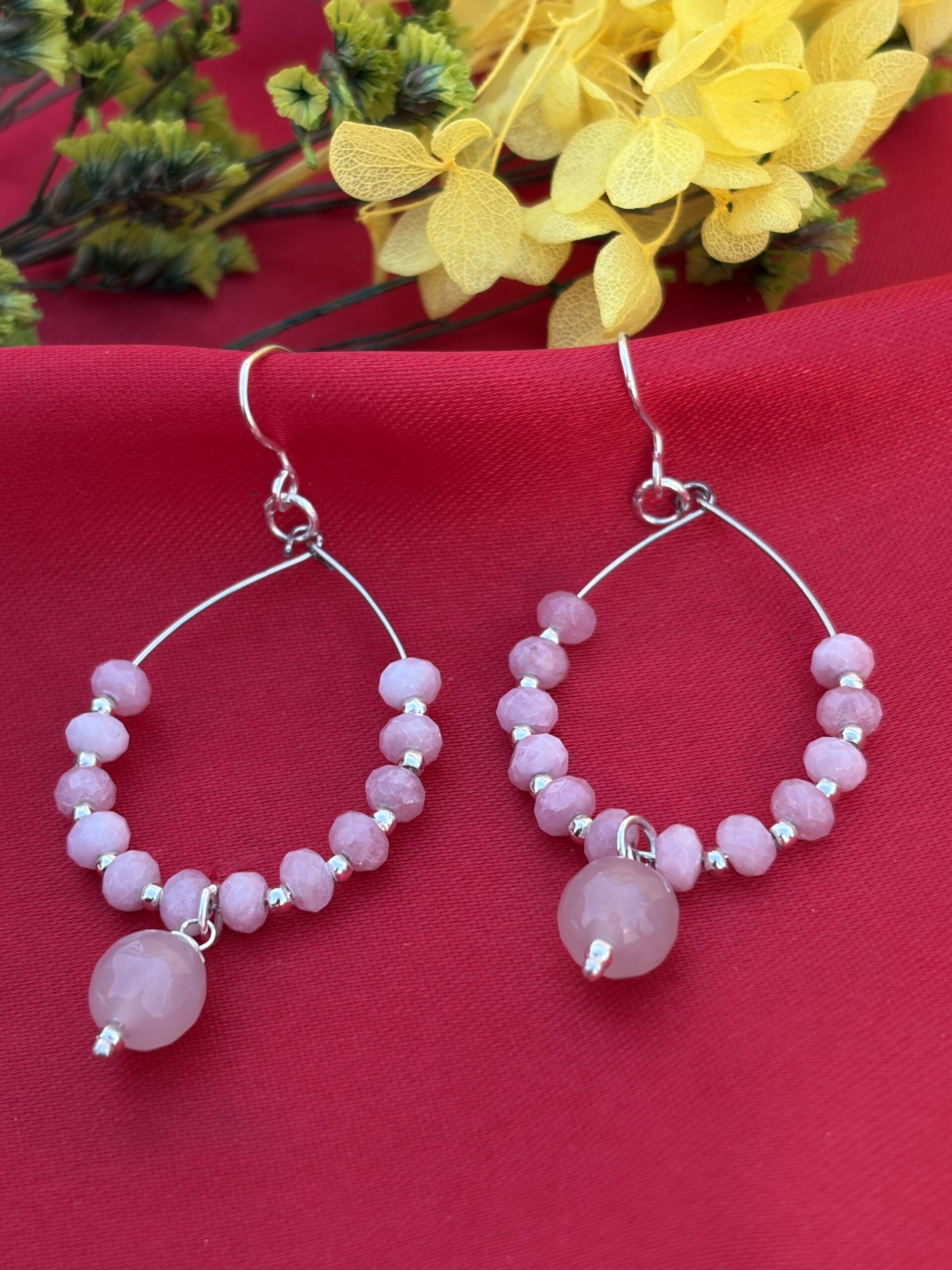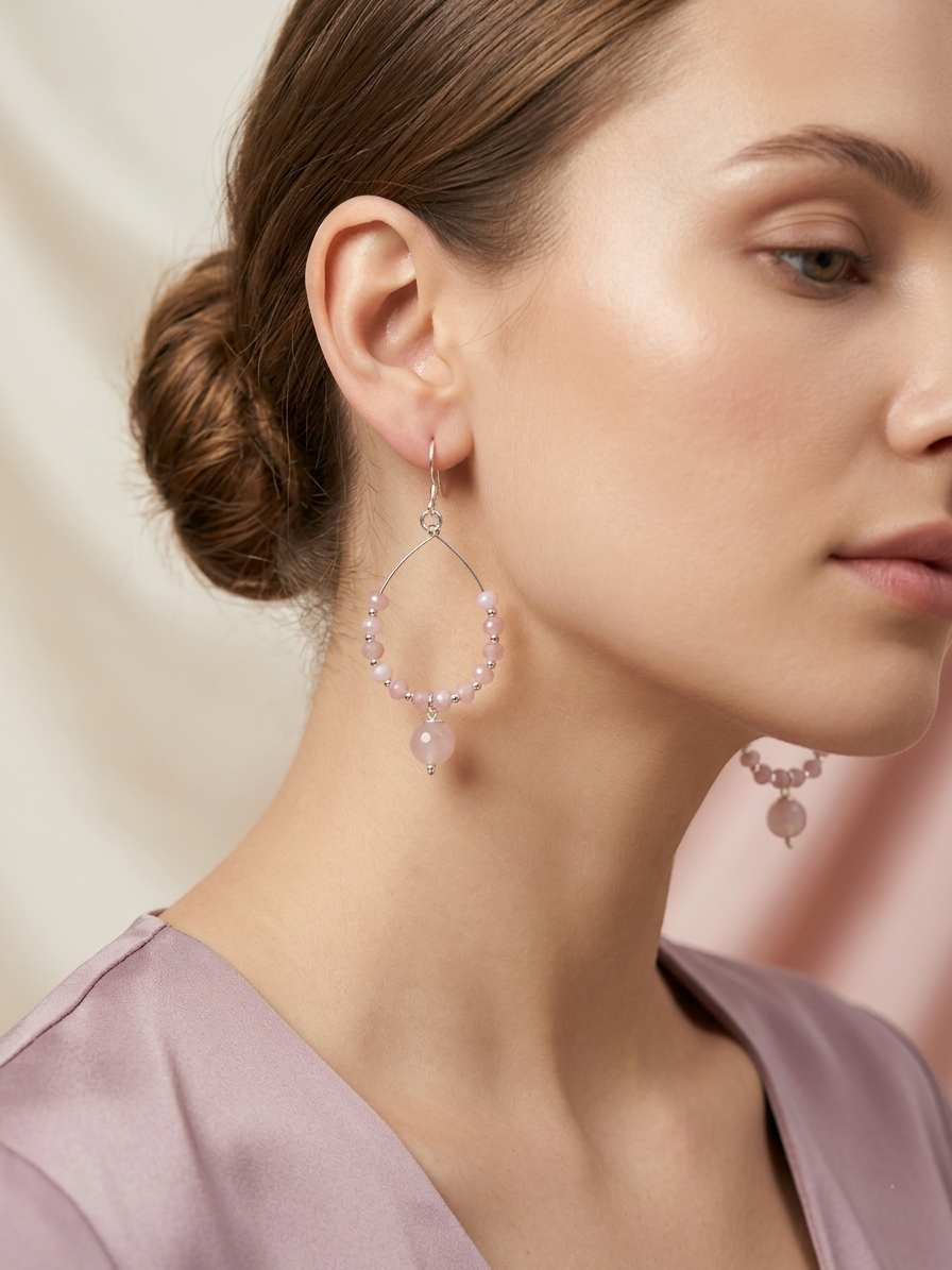 Pink beaded hoop earrings with a soft, elegant, and everyday style 💗